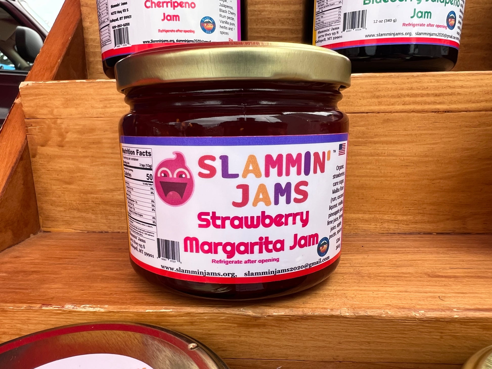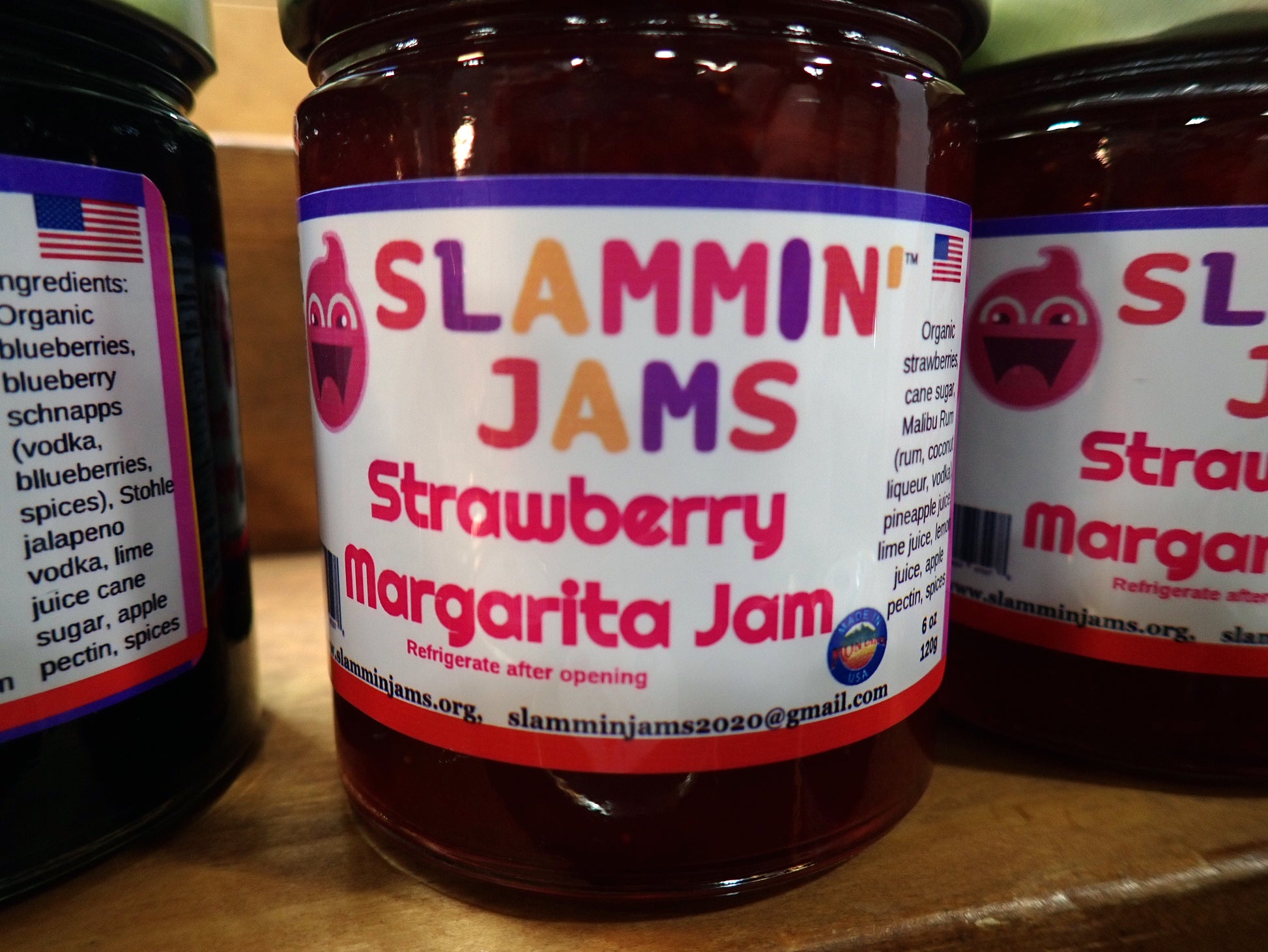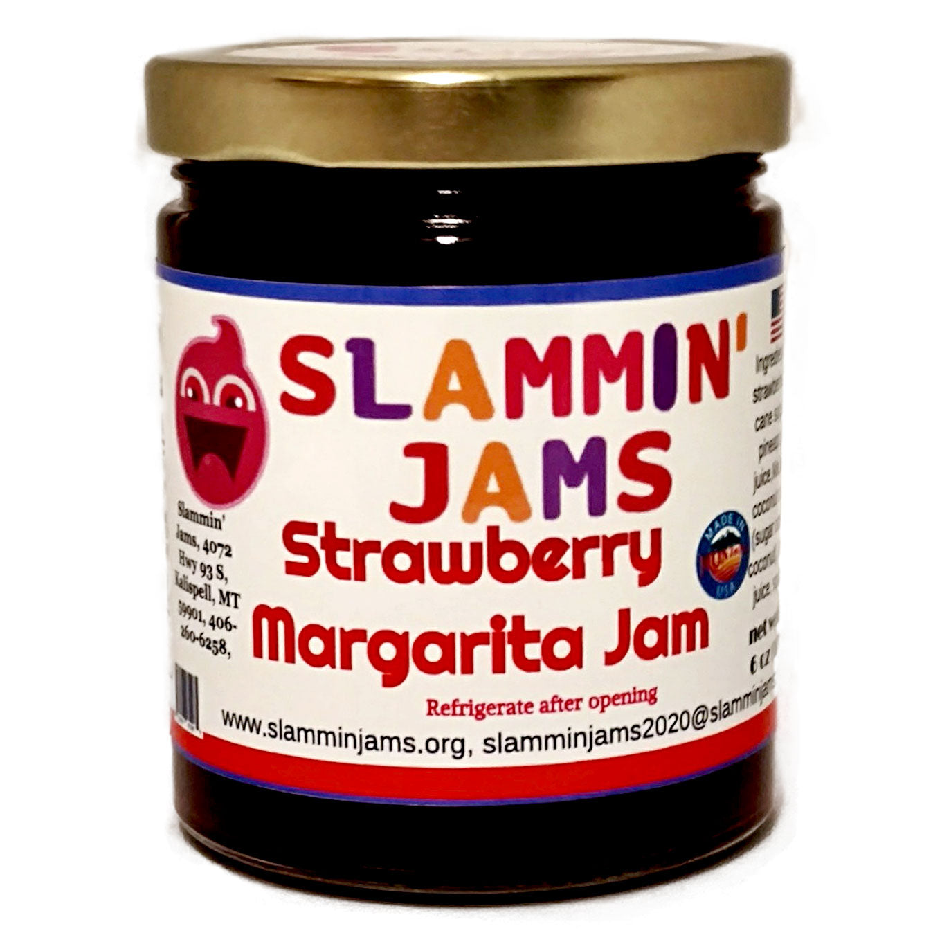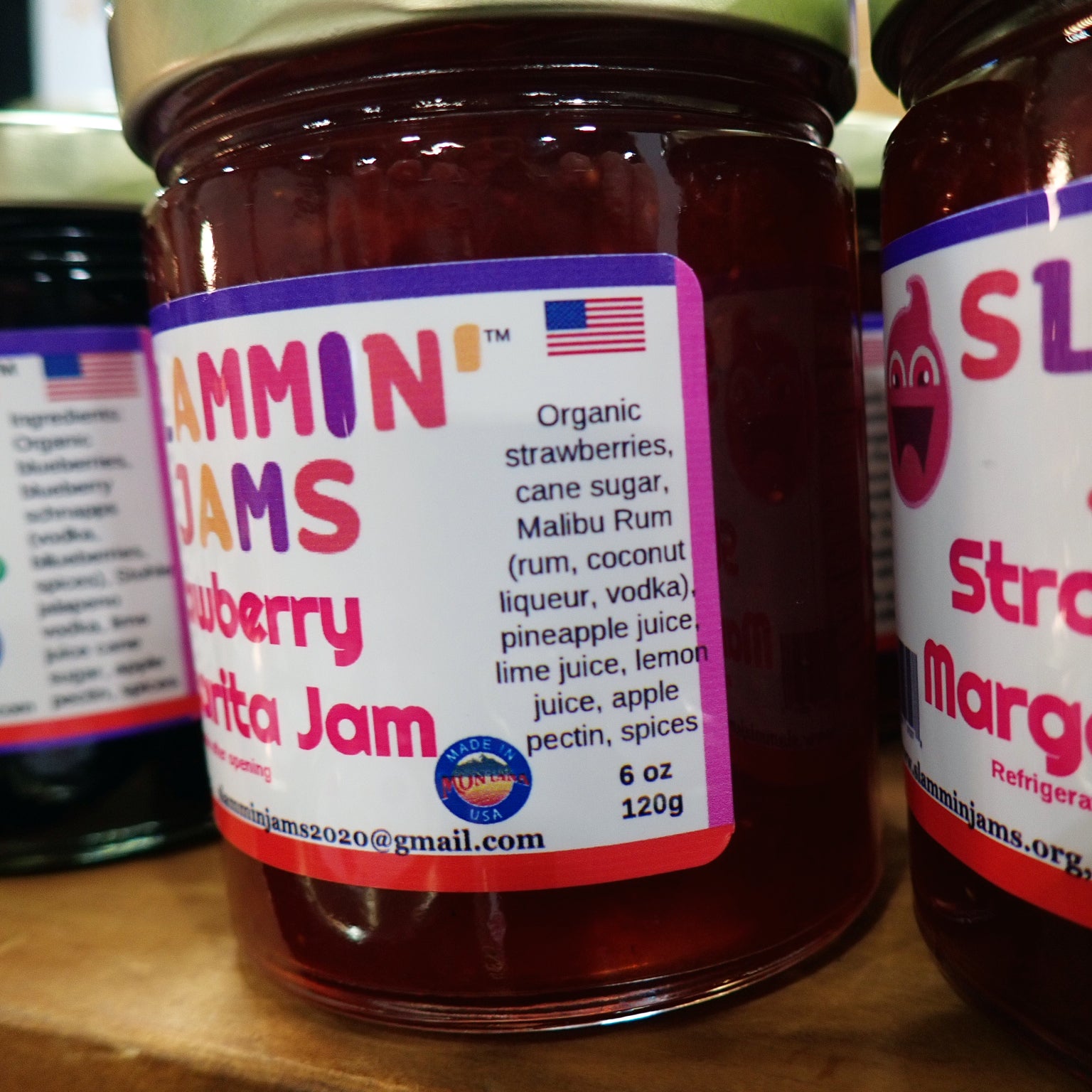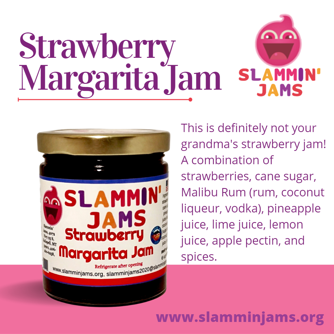 This is definitely not your grandma's strawberry jam! A combination of strawberries, cane sugar, Malibu Rum (rum, coconut liqueur, vodka), pineapple juice, lime juice, lemon juice, apple pectin, and spices.
